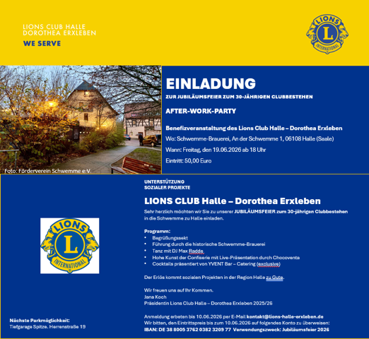 Anmeldungen erbeten bis  10.06.2026 per Anmeldeformular oder per E-Mail an kontakt@lions-halle-erxleben.de.